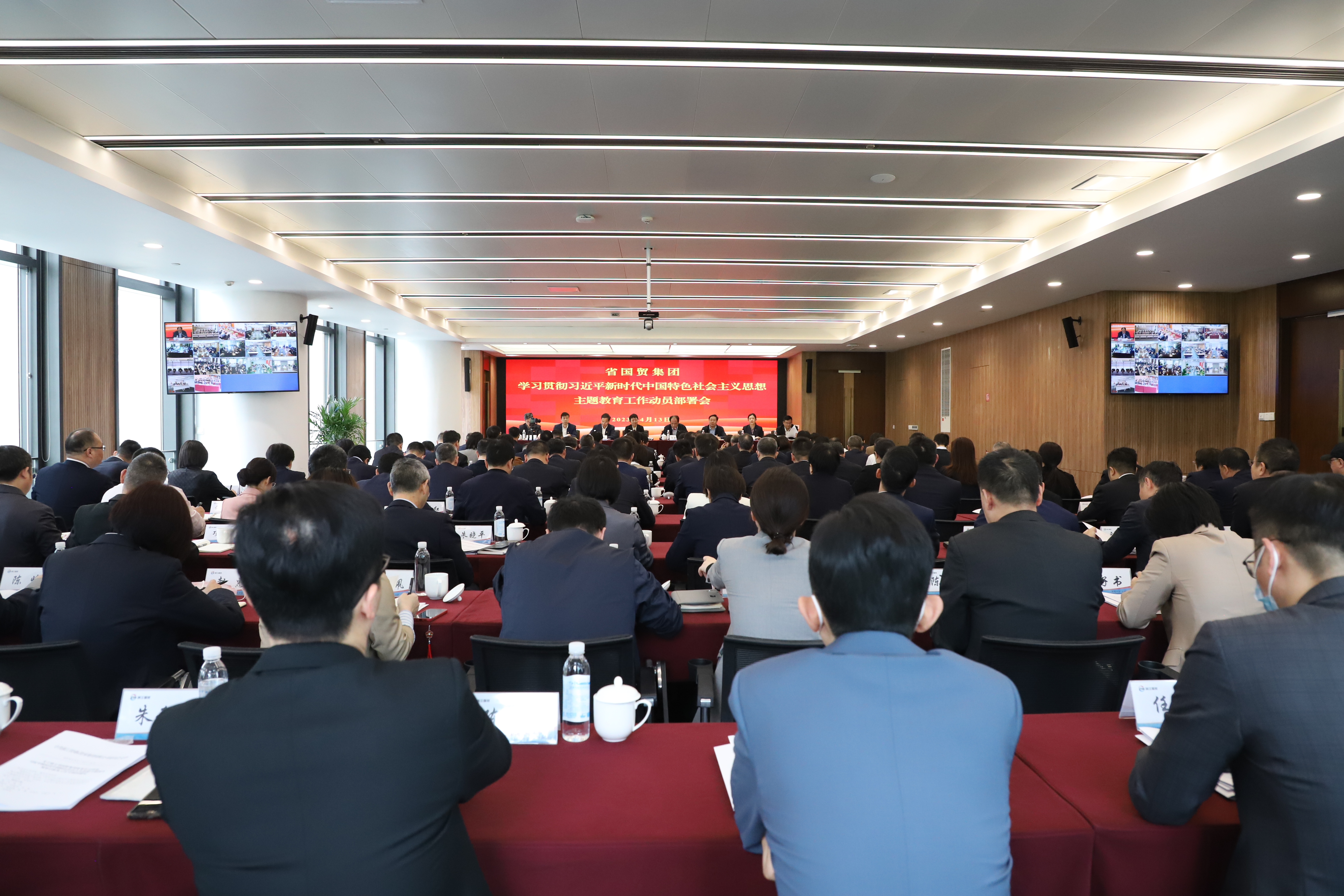 4月13日,集團召開學習貫徹習近平新時代中國特色社會主義思想主題教育工作動員部署會,深入學習貫徹習近平總書記在中央主題教育工作會議上的重要講話精神,貫徹落實中央、省委布署要求,動員部署集團主題教育工作,圍繞“五對標、五潮頭”主線,全面掀起主題教育“國貿·潮”,為深入實施“八八戰略”,以“兩個先行”打造“重要窗口”,奮力譜寫中國式現代化浙江篇章展現更大擔當作為。